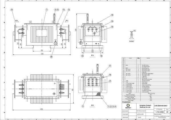 The transformer was engineered with a Yyn0 vector group and an impedance of 4.0%, ensuring compatibility with low-voltage distribution requirements. A dual primary voltage design was implemented using two groups of bushings, allowing selection between 0.525 kV and 0.55 kV during installation.